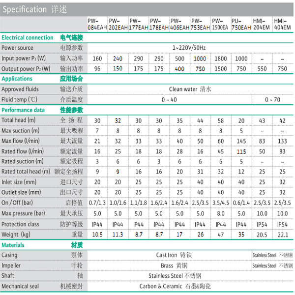 自動(dòng)自吸泵PW-202EAH老型號(hào):(PW-122EAH)