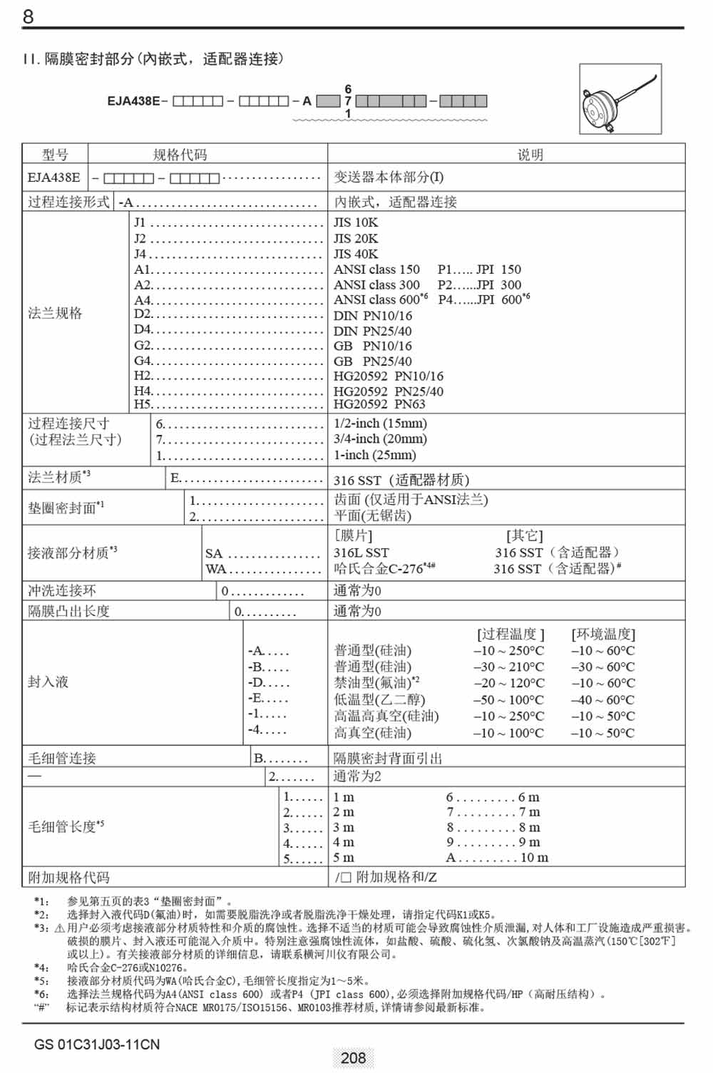 名稱:EJA438E/Z隔膜密封式壓力變送(內(nèi)嵌式膜片)